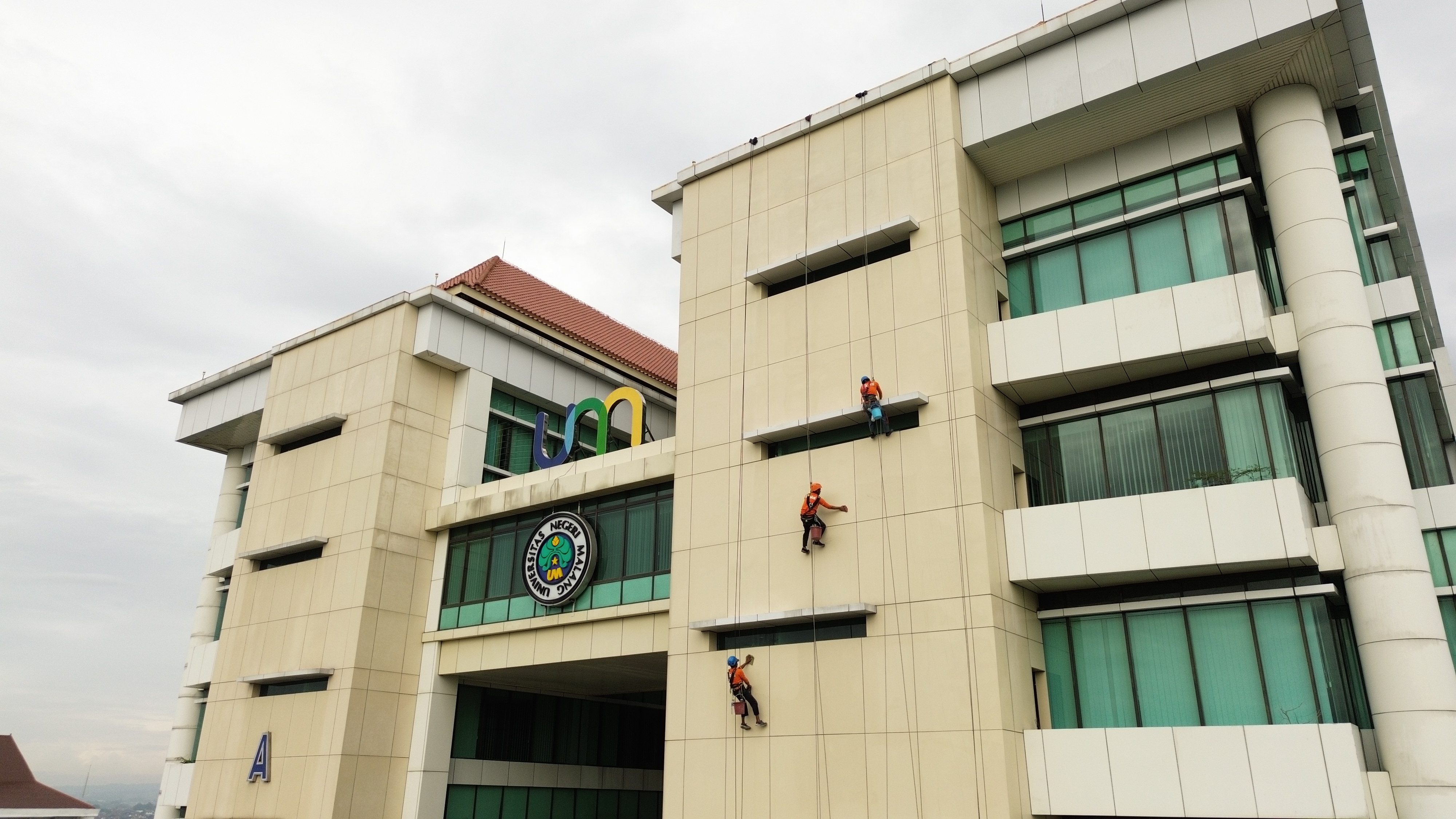 Pembersihan Facade Gedung Rektorat UM Malang
